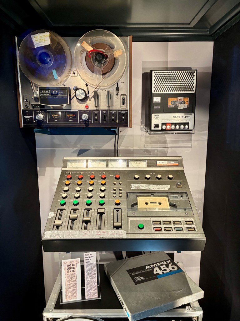 Here are some of the photos I took of the exhibition but as such behaviour is generally frowned upon, they were limited to just one room. The recording equipment is what they used to record their second album (I had a cassette recorder just like that one).
